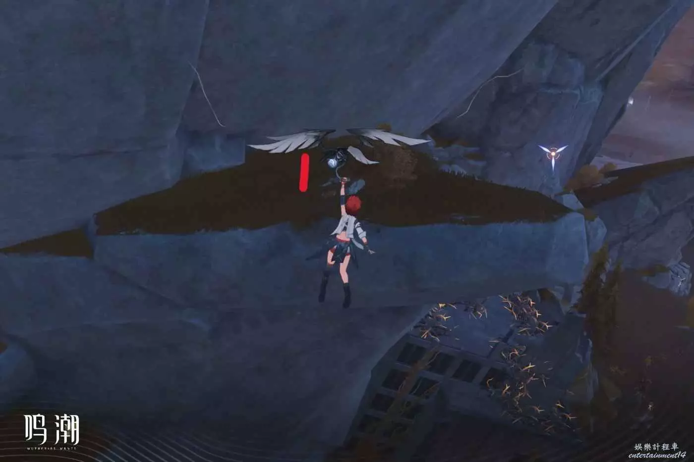 在突出的懸崖下面半層。