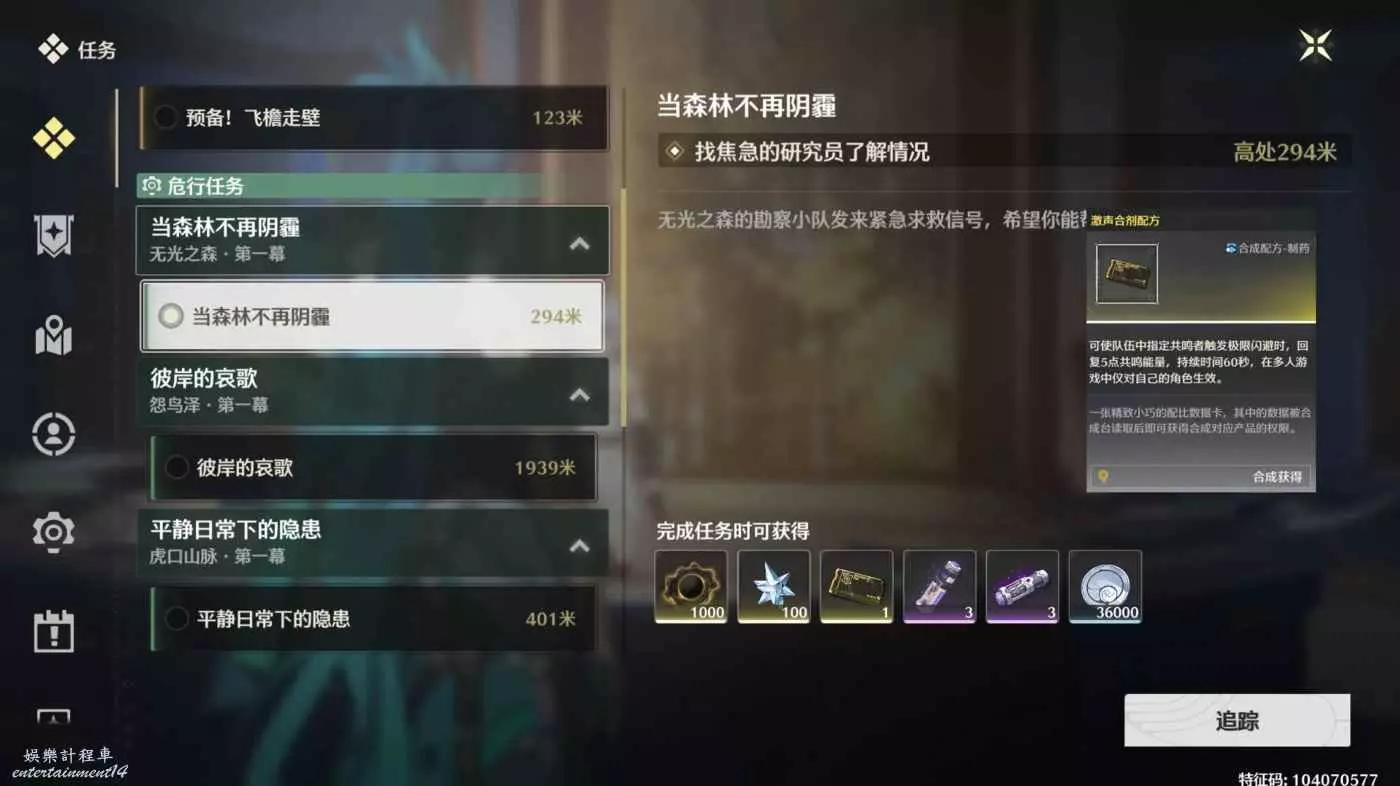 6.危行任務-當森林不再陰霾-無光之森·第一幕,獲得激聲合劑配方