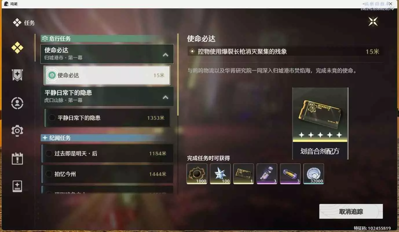 5.危行任務-舊日之影-虎口山脈·第二幕(前置任務:平靜日常下的隱患),獲得