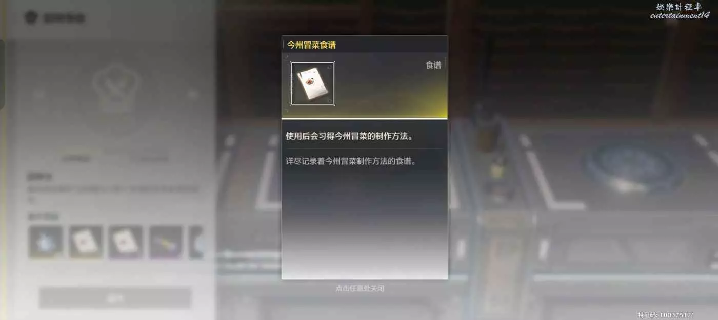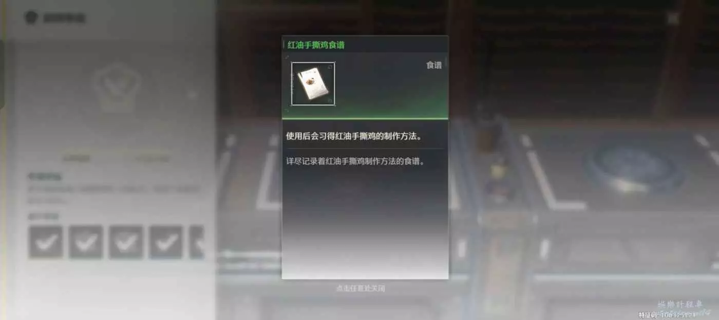 鳴潮 (Wuthering Waves) 廚師等級解鎖食譜一覽 4 6 月 2024-06-04 廣告 作者:更加努力吧飛 來源:kurobbs 總共5個等級。 只有1234級才有食譜,每級解鎖2本。 5級什麼也沒有。 1級 紅油手撕雞 每日清茶 2級 香汁雞 香辛肉片 3級 龍抬頭 舒雲蜜汁涼茶 4級 今州冒菜 拔絲菱果 5級啥也沒有給。