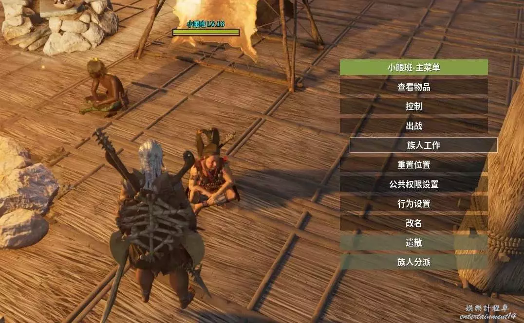然後,退出族人的背包介面,再對準這個族人長按【E】鍵,選擇【族人工作】。