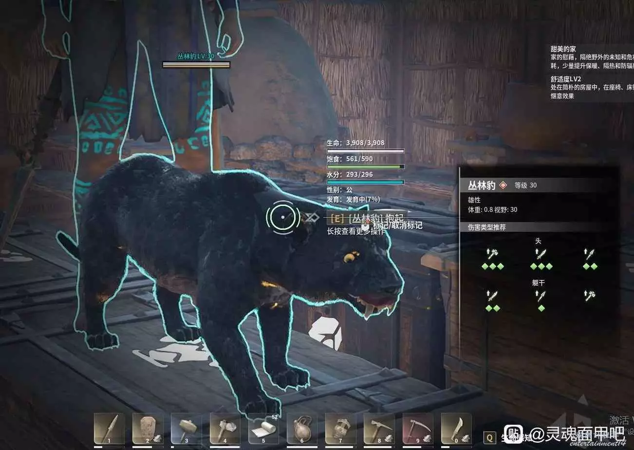建議一開始開荒到皮套就直接抓豹子,可以節約大量時間和精力,懶得打水。豹子就吃生肉就行好養活….。