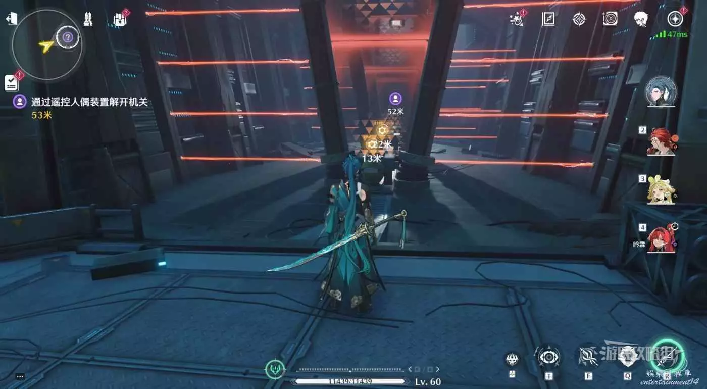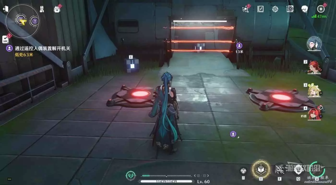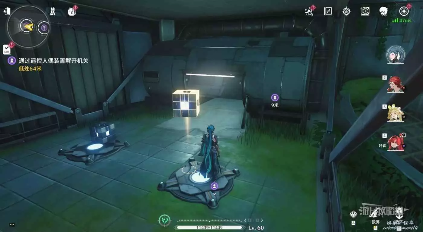 繼續跟隨任務指引前進到達下層,房間裡有2個可互動的機關。