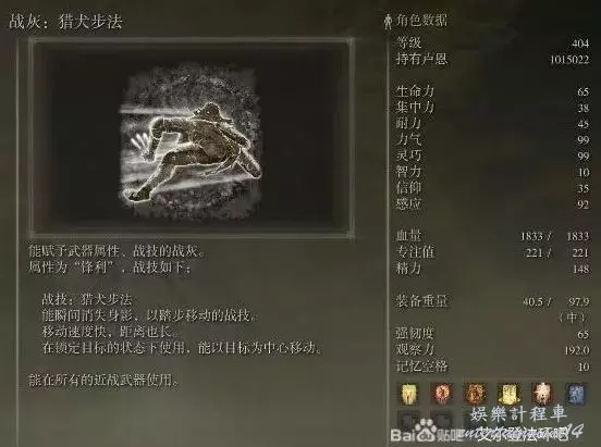 接下來說一下雙持巨劍的戰灰選擇,第一個可以選擇的是獵選步伐。