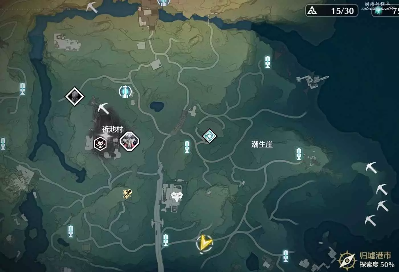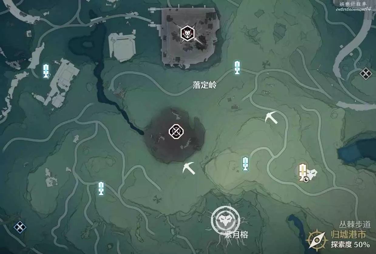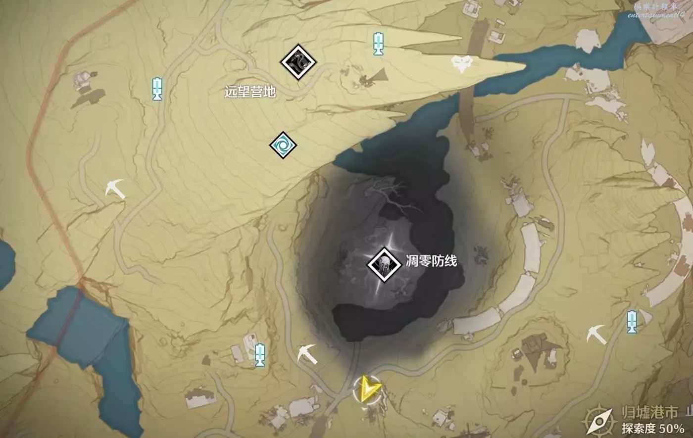 圖中礦鎬位置為紅晶簇採集點位,可用於在合成台製作尋音元件,早日集滿聲匣
