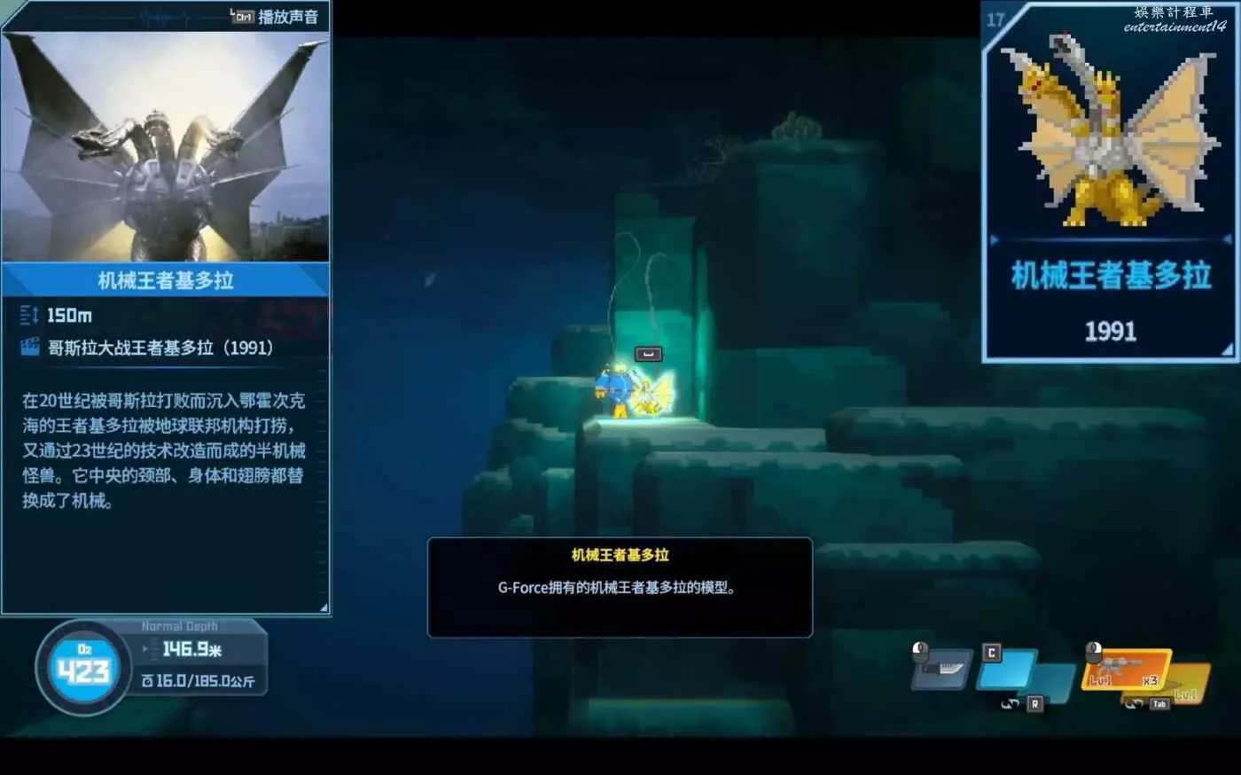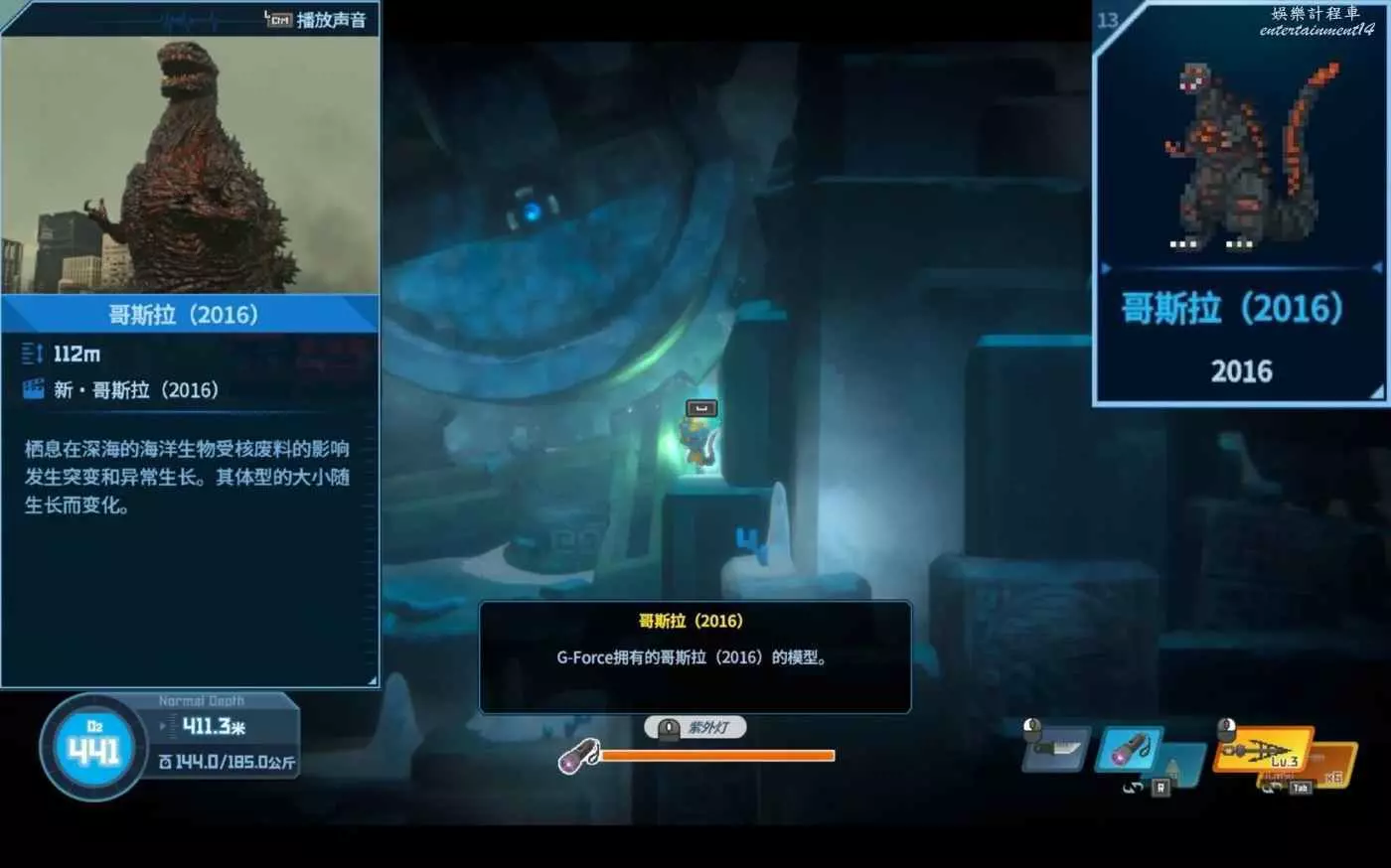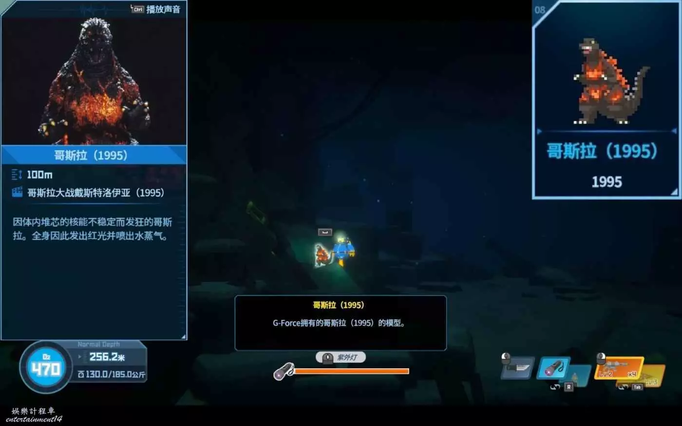 在深海區,主線劇情僵屍鮫人的監獄門口,同時也是聯動劇情初見哥斯拉的位置。