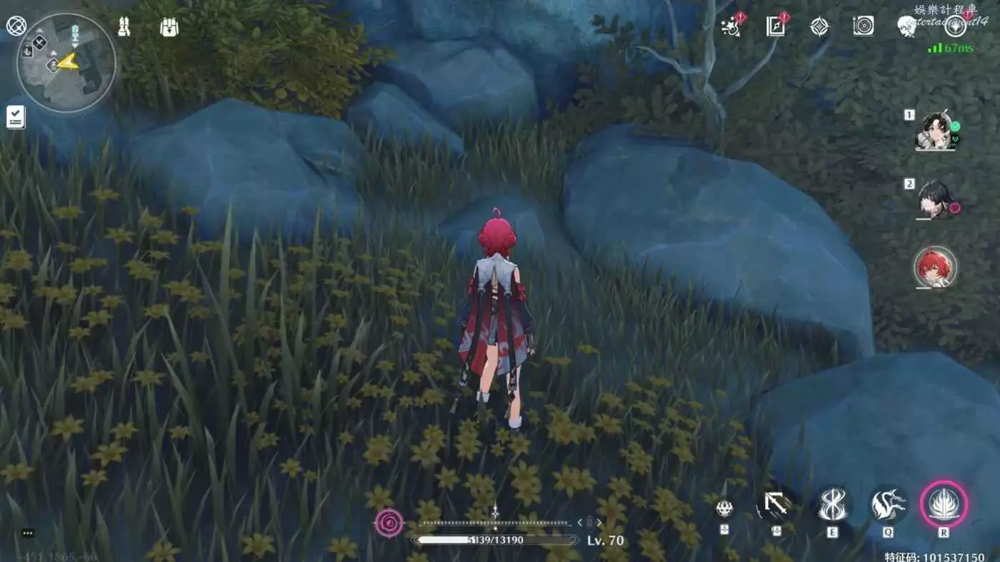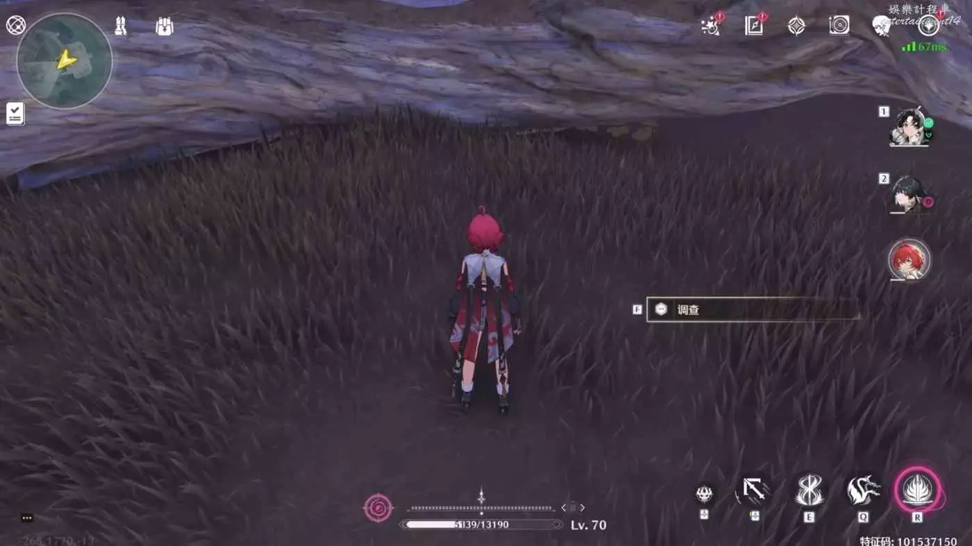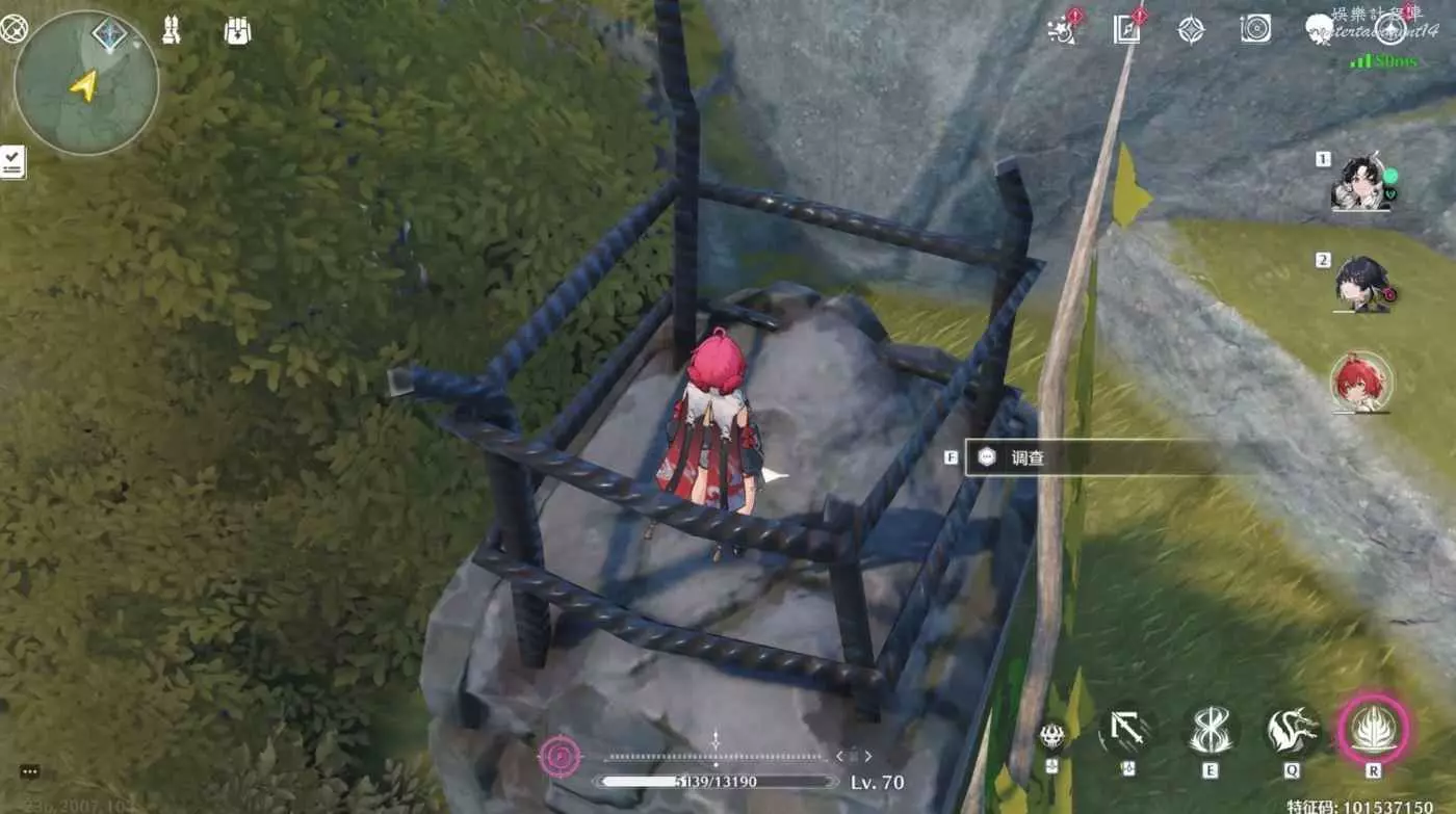 從上圖的鐵罐開始,向上爬兩層,也就是上圖的最高處,可以看到一堆亂石,調查點在亂石中間(我撿過了所以不顯示)