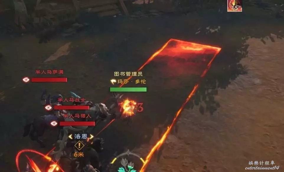 此時還會出現半人馬薩滿,會讀條施放群體恢復,輸出職業需第一時間打斷,並且薩滿還會點名幾名隊友進行點燃造成持續傷害,所以可以在薩滿出現後優先擊殺薩滿,再去打人馬和其他小怪。(普通難度壓力不大,但精英難度將會感受到治療壓力)