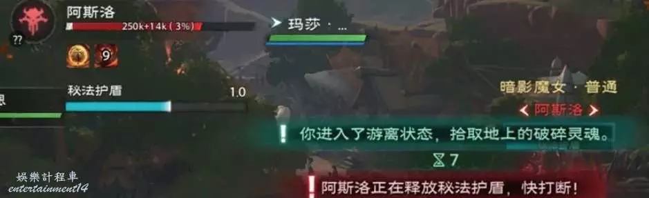 機制六:秘法護盾,輸出職業看到讀條需要立即打斷,否則將給BOSS施加高額護盾