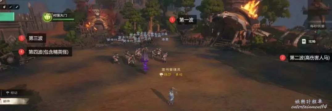 如下圖,會按照序號位置依次出現四波小怪,此階段,坦克職業需要提前去小怪刷新點就位並第一時間使用範圍群體嘲諷技能,輸出職業全力打小怪,治療職業需治療坦克和被技能點名的DPS隊友