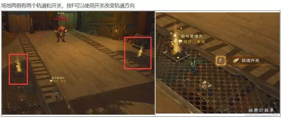 每當BOSS身後的門有一處亮紅燈時,需派一名隊友前往對應門的扳手住互動拉扳道開關,讓軌道偏離阻止援兵到達。