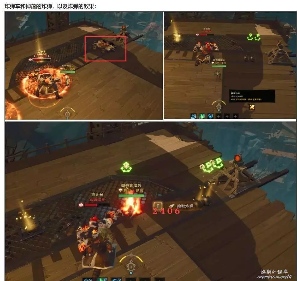 每當BOSS身後的門有一處亮綠燈時,無需去拉扳手,讓炸彈車的炸彈掉落下來,可派一名DPS隊友去拾取炸彈,並投擲給BOSS造成大量傷害。