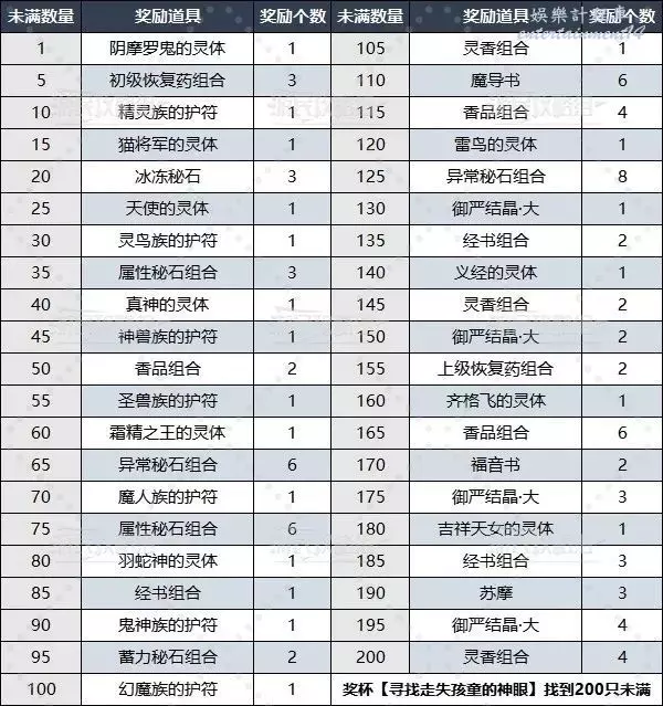 根據所收集的未滿數量,可以在古斯塔夫處獲得相應的獎勵,內容如下:
