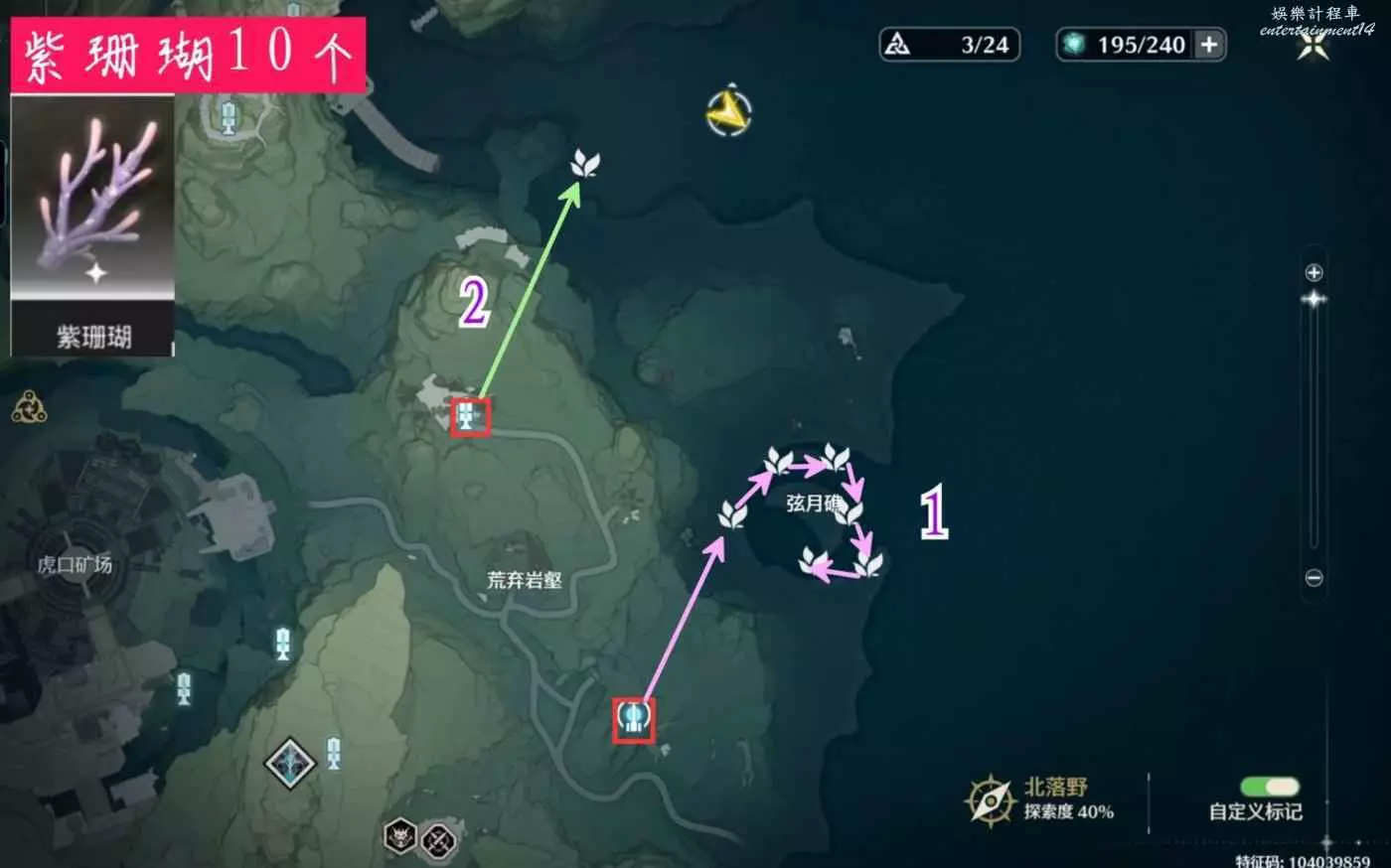 紫珊瑚大致分佈在“弦月礁”和“北落野”兩個區域;