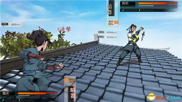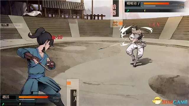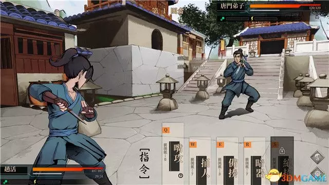 你將遇到這個房間的管理人,唐門大弟子“唐布衣”,完成與他的對話後,你將進入卷軸式的混戰。