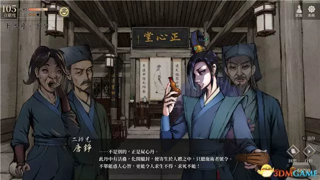 首次來到這個房間,你將遇到這個房間的管理人四師兄唐惟元。