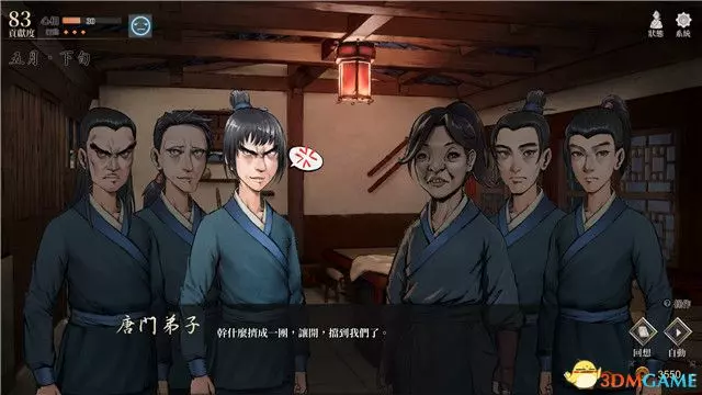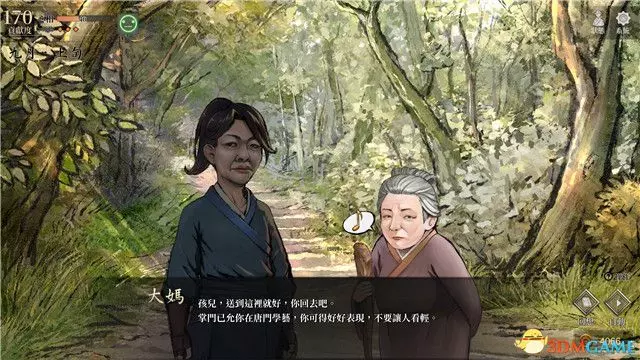 被弟子排擠的事情過後,將繼續自動觸發後山遇到蒙面人的劇情。