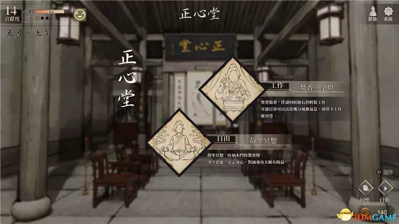 事件1:工作(焚香,掌燈,提升貢獻度)