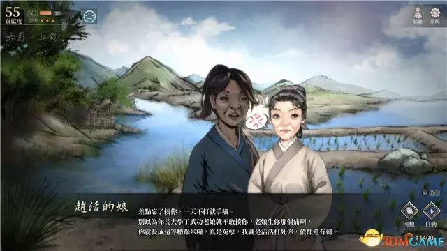 【23】宦海浮沉-要拜夏侯蘭為師,心上人要是魏菊,魏菊好感度要夠高(大概),師傅看你心情浮躁,會幫你抓新娘子回來,選項選“要找漂亮的喔(幹話)”,後續骰到“被惡霸強搶的村姑”,“無父無母的孤兒”是樊嘯天, “為富不仁的貪官女兒”是上官螢,這兩個都沒有後續劇情