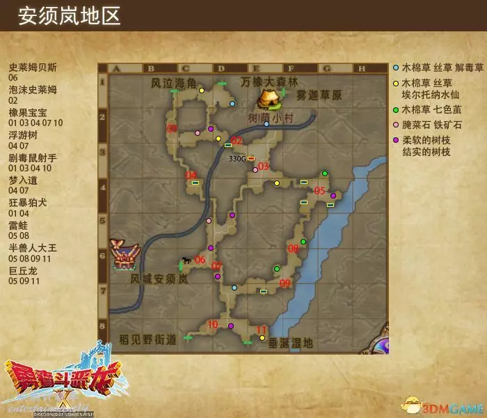 進入久遠之森(適合5—7級打怪升級)地圖東邊的世界樹之丘