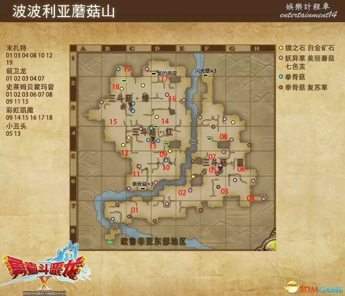 採集點紅:貓砂、美麗蘑菇、拳骨菇