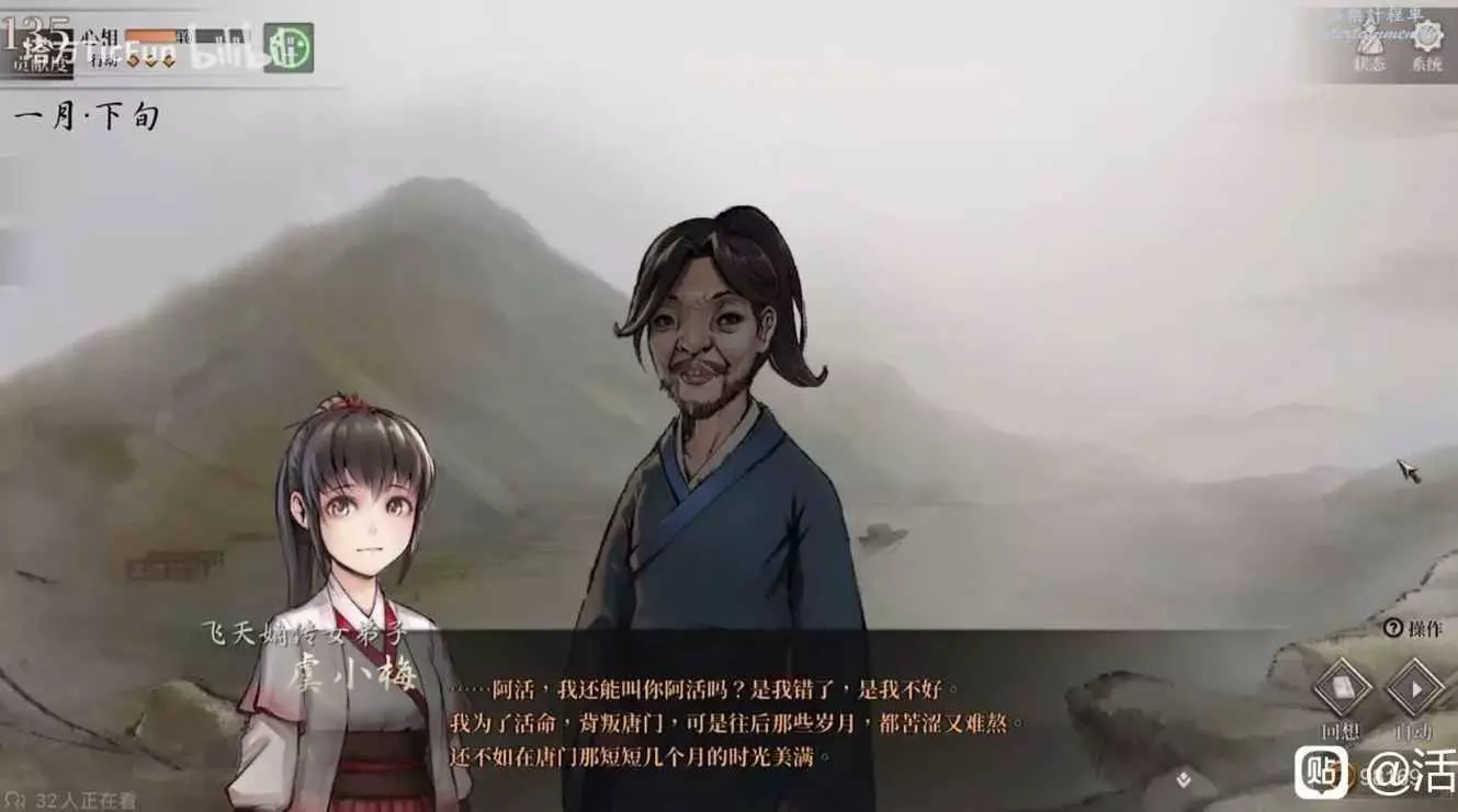 是趙活在傳功救大師兄的時候小梅會忽然出現並表示大師兄必死,趙活所做的一切都毫無意義,如果堅持要救趙活自己也會死,小梅不願意親手殺死趙活,希望趙活放手。此時如果選擇放棄,小梅會迷倒趙活,用毒藥使趙活散盡全身功力,並流放到一處小島上。這處小島是小梅自己偷偷建立的,類似桃花源一樣的地方,島上的人都是曾和小梅建立過羈絆的人,小梅為了避免他們捲入江湖紛爭將他們藏匿到此處。此處疑似和杏花仙有關,布有迷陣,無法脫逃。