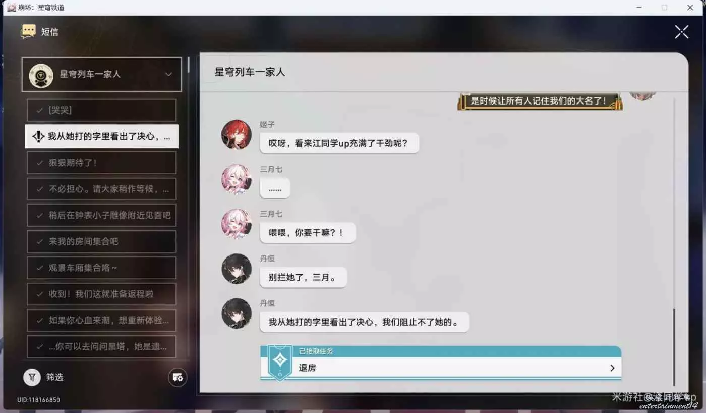 (1)完成2.3主線後,通過【星穹列車一家人】短信,即可接到該任務