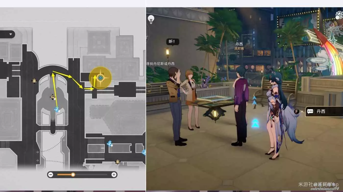(10)最後再來到下圖位置找【丹西】對話後,該任務就結束了,同時獲得成就《酒店內禁止執行任務》