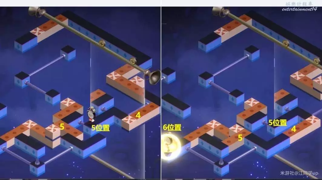 (3)將5鏡子移到右上,將1黃色模組移到右上,將3黃色模組移到左上,將4黃色模組移到右上,【鐘錶小子】會從3位置到4位置