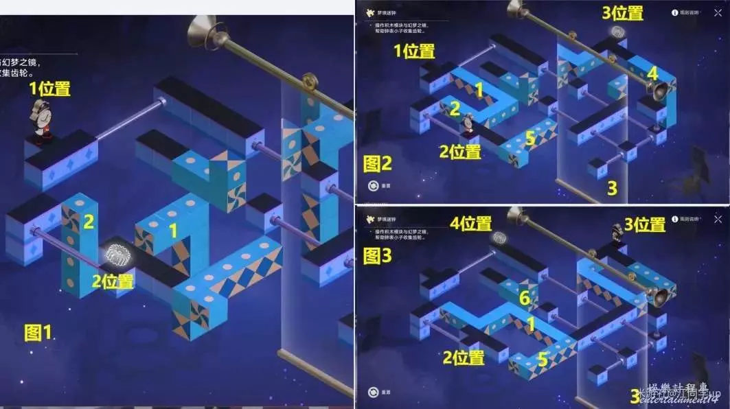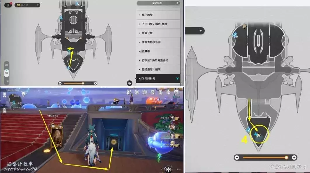 (3)在2.2版本【匹諾康尼】3個地圖【流夢礁 】【蘇樂達™熱砂海選會場】【匹諾康尼大劇院 】共有10個【夢境迷鐘】解密