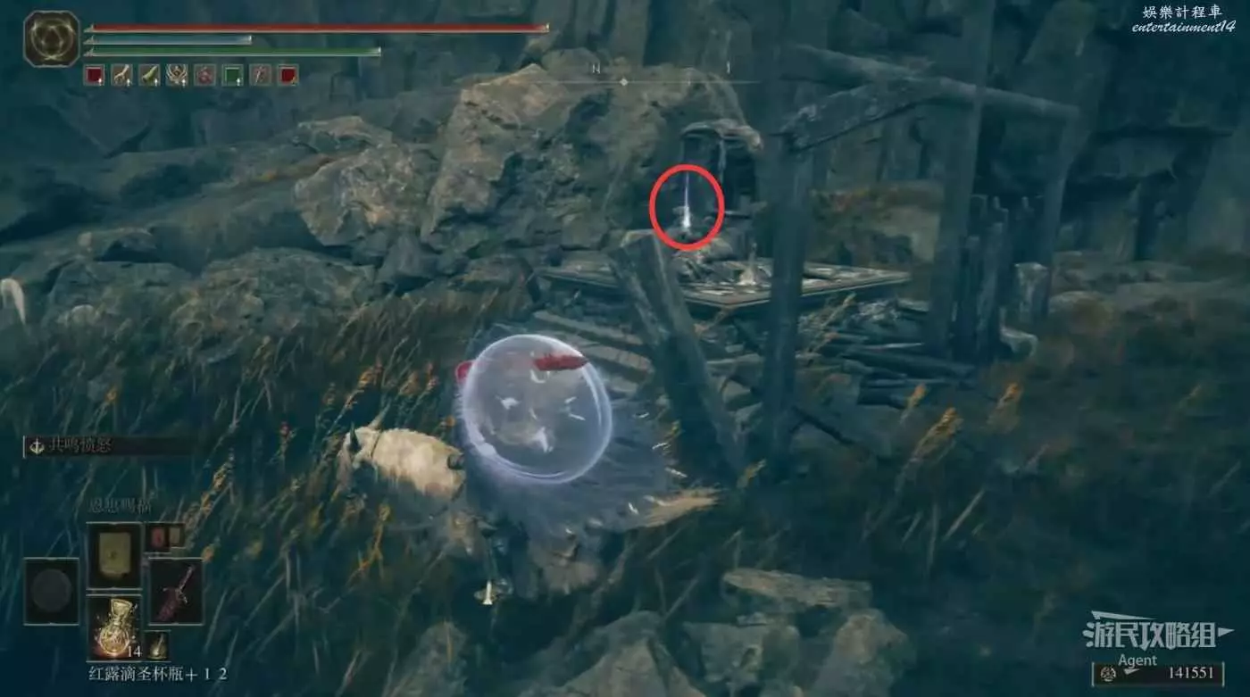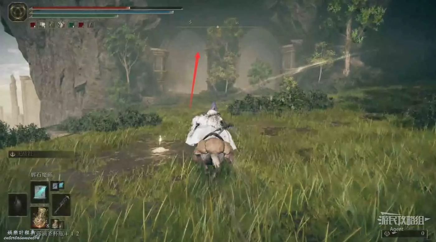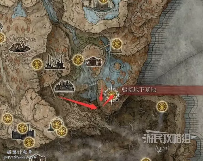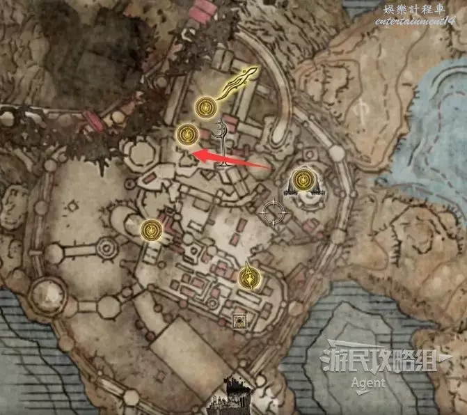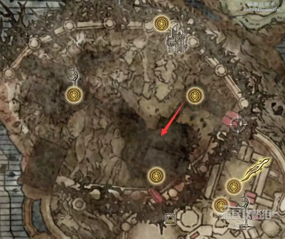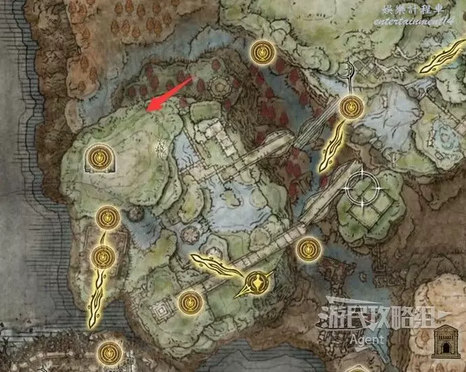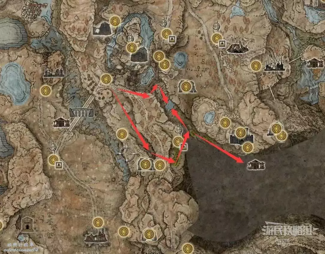 2、從“高架橋的小塔”賜福點出發,按下圖路線進入迷宮。