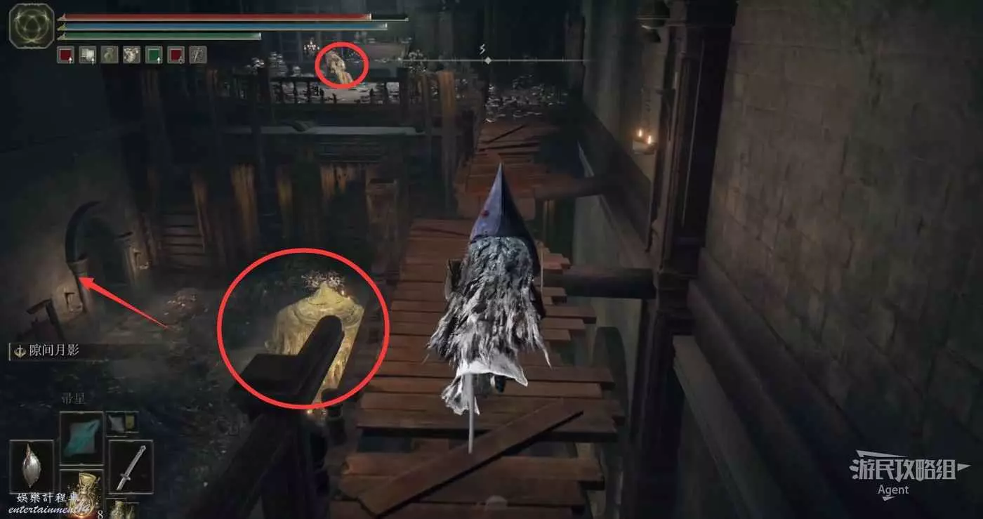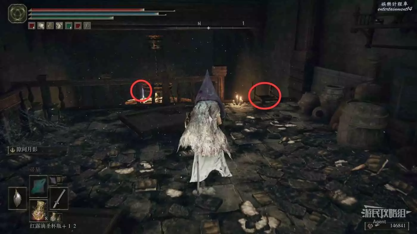 2、癲火之王米德拉的府邸,“二樓小房間”賜福點旁有個梯子可以放下,這是回到府邸大廳的捷徑。