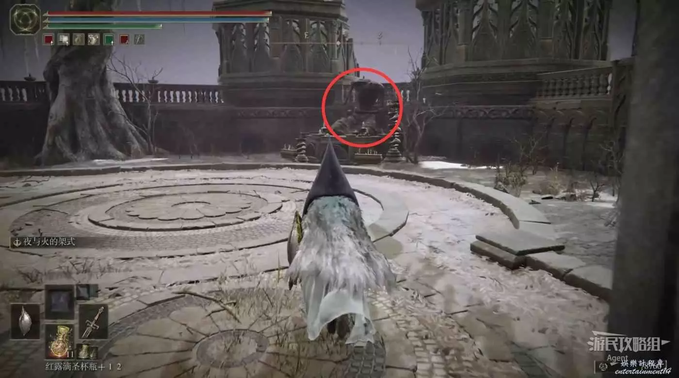 1、從“第一塔”賜福點往南來到花園,花園下層有很多蒼蠅蟲圍著雕像,撿到【靈灰】。