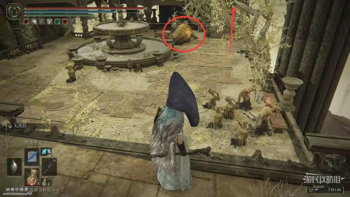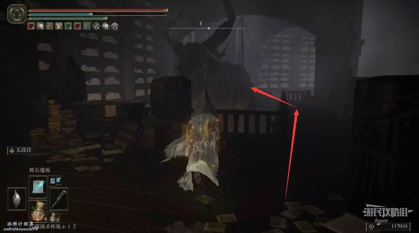 2、花園裡的大傢伙掉落【靈灰】,然後走樓梯到上層。
