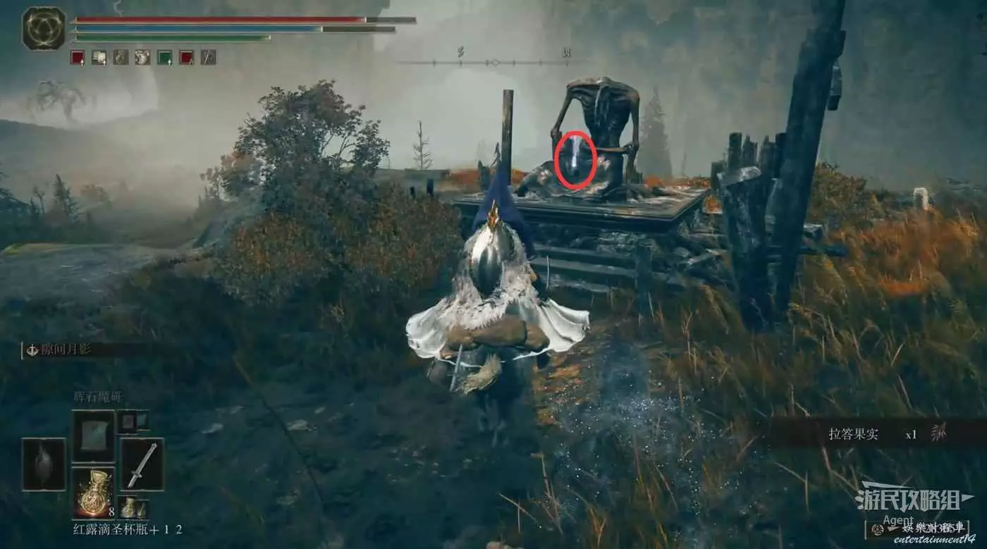 3、“塔之鎮”貝瑞特即將抵達BOSS房的路上,大樹旁撿到【靈灰】。