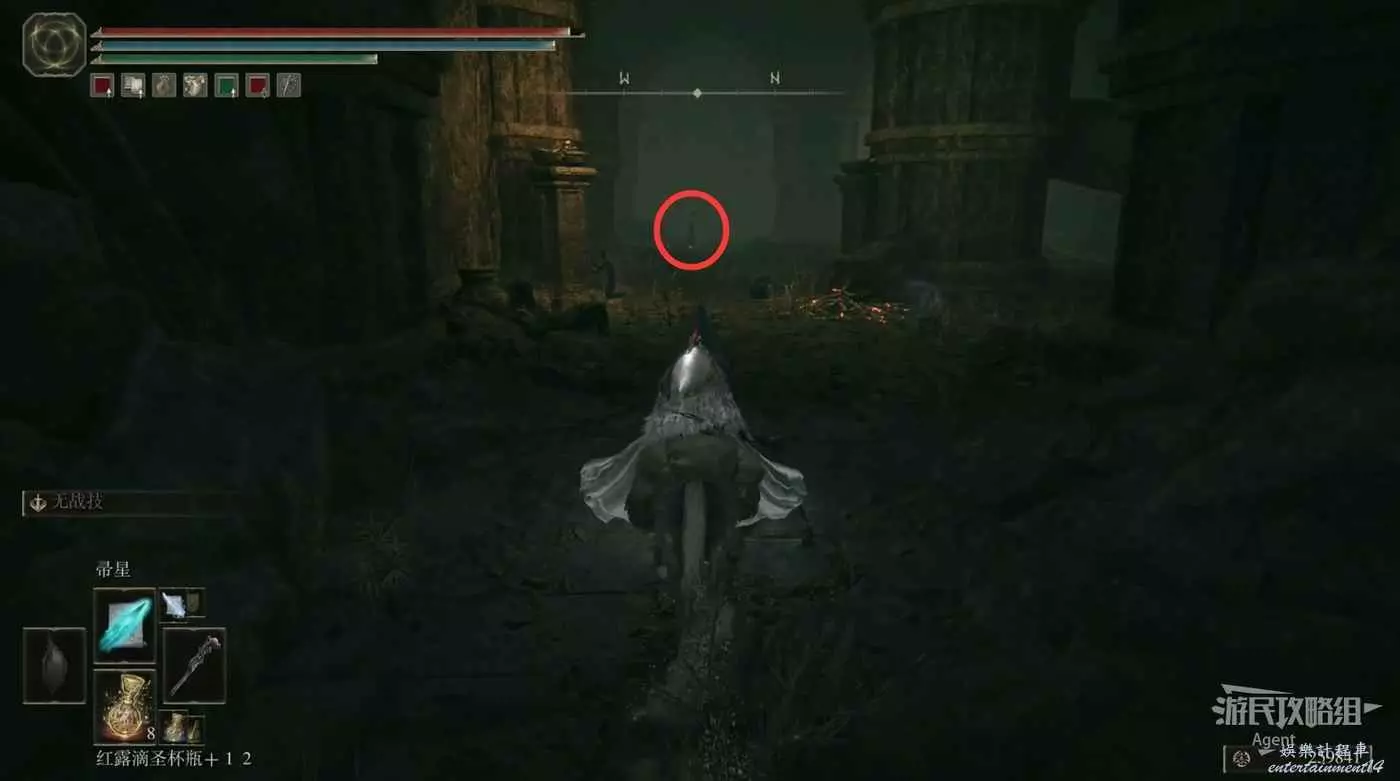 1、從恩希斯城外“城的前方”賜福點出發,有兩條路可以下到下層去。