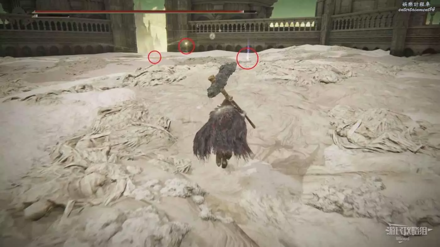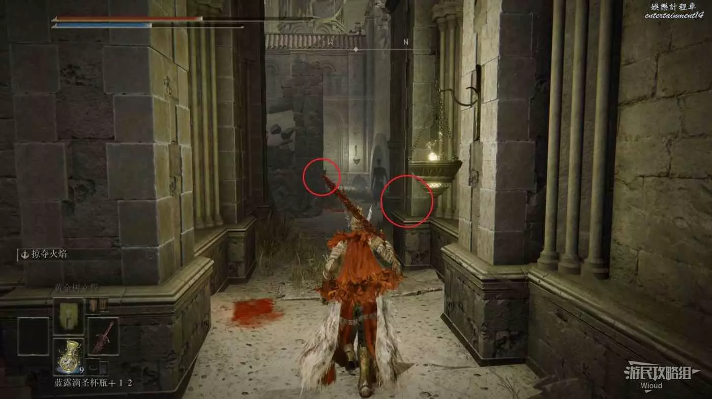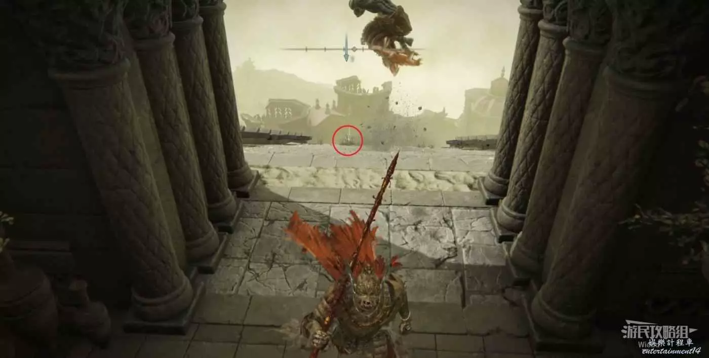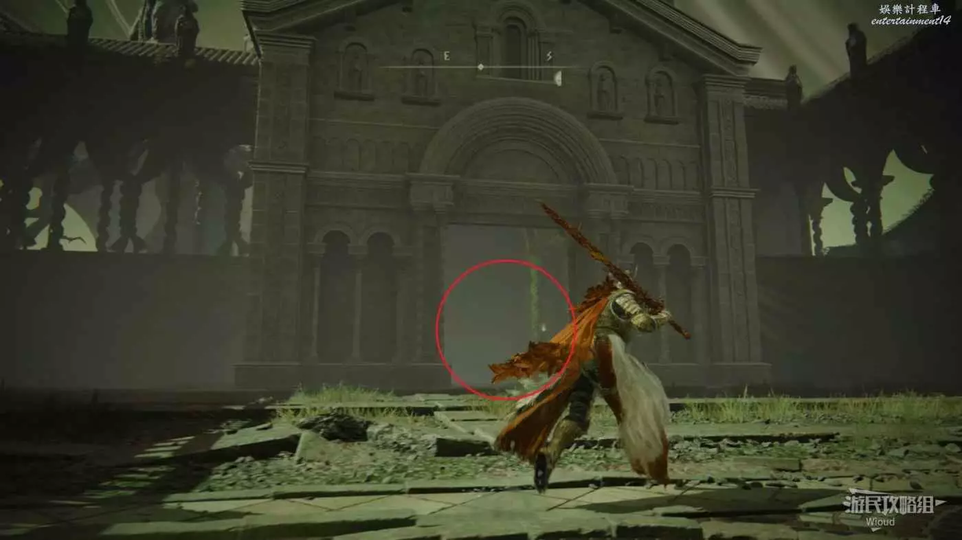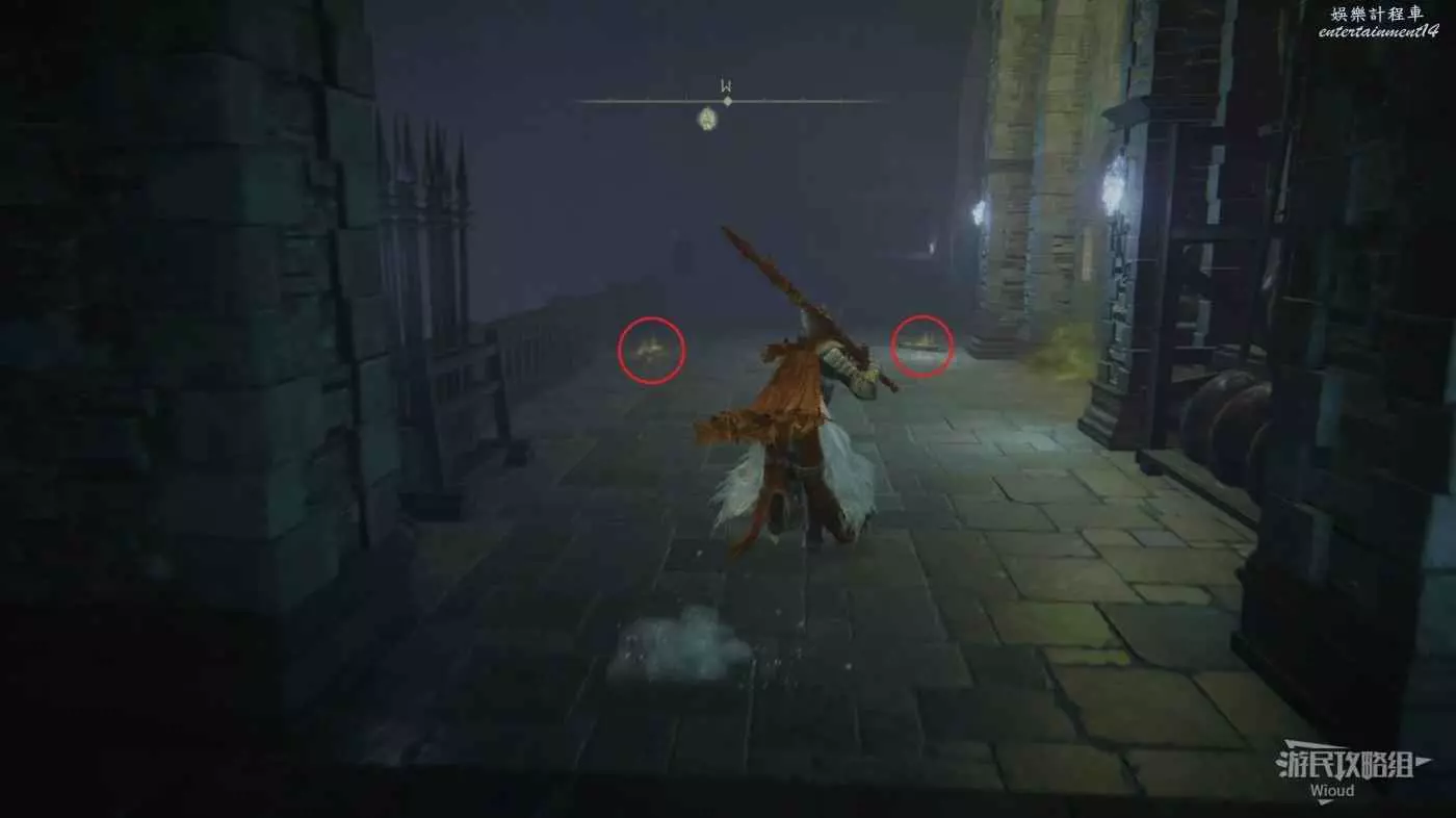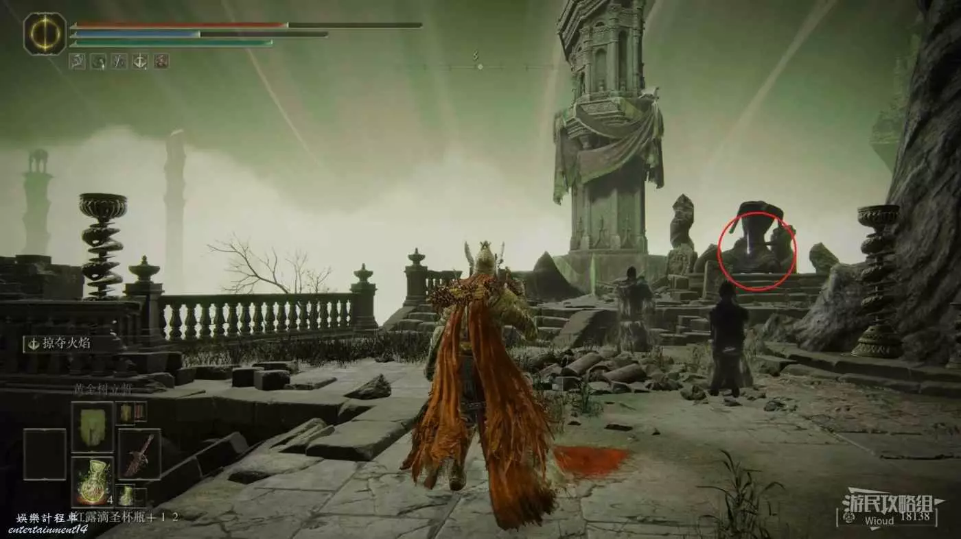 此處可以看到左右兩邊各有一個圓形建築,我們往左側的那一個走,中間雕像的位置可以撿到一個【靈灰】。