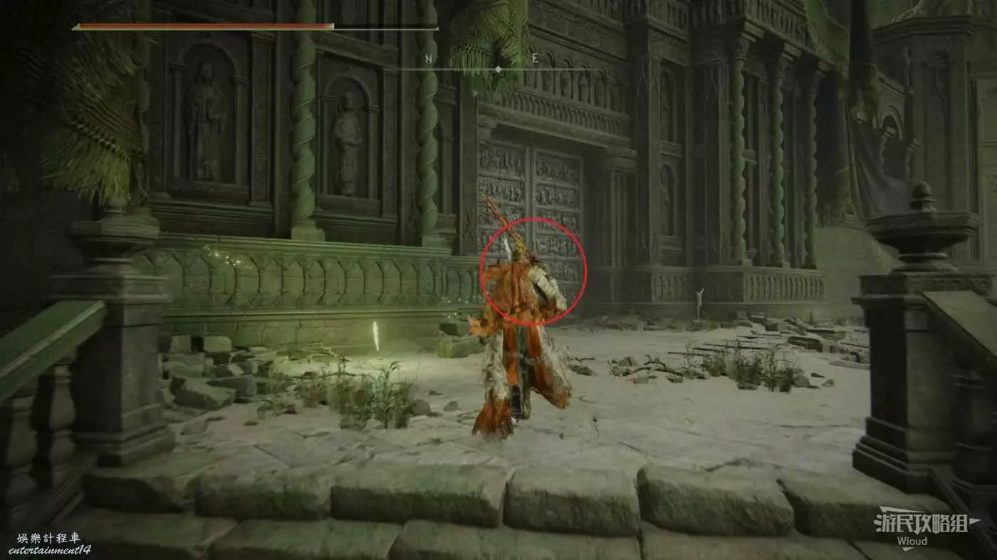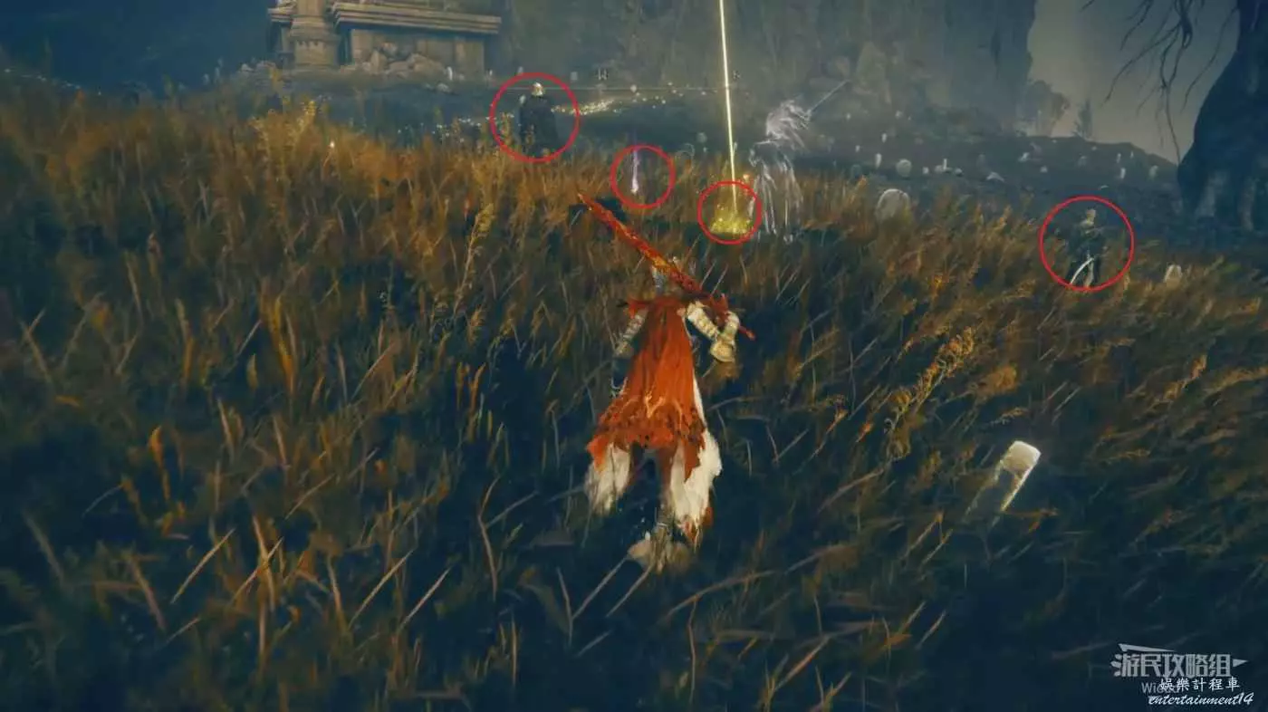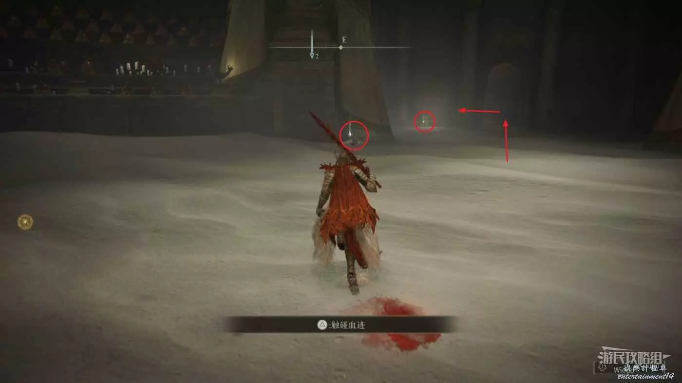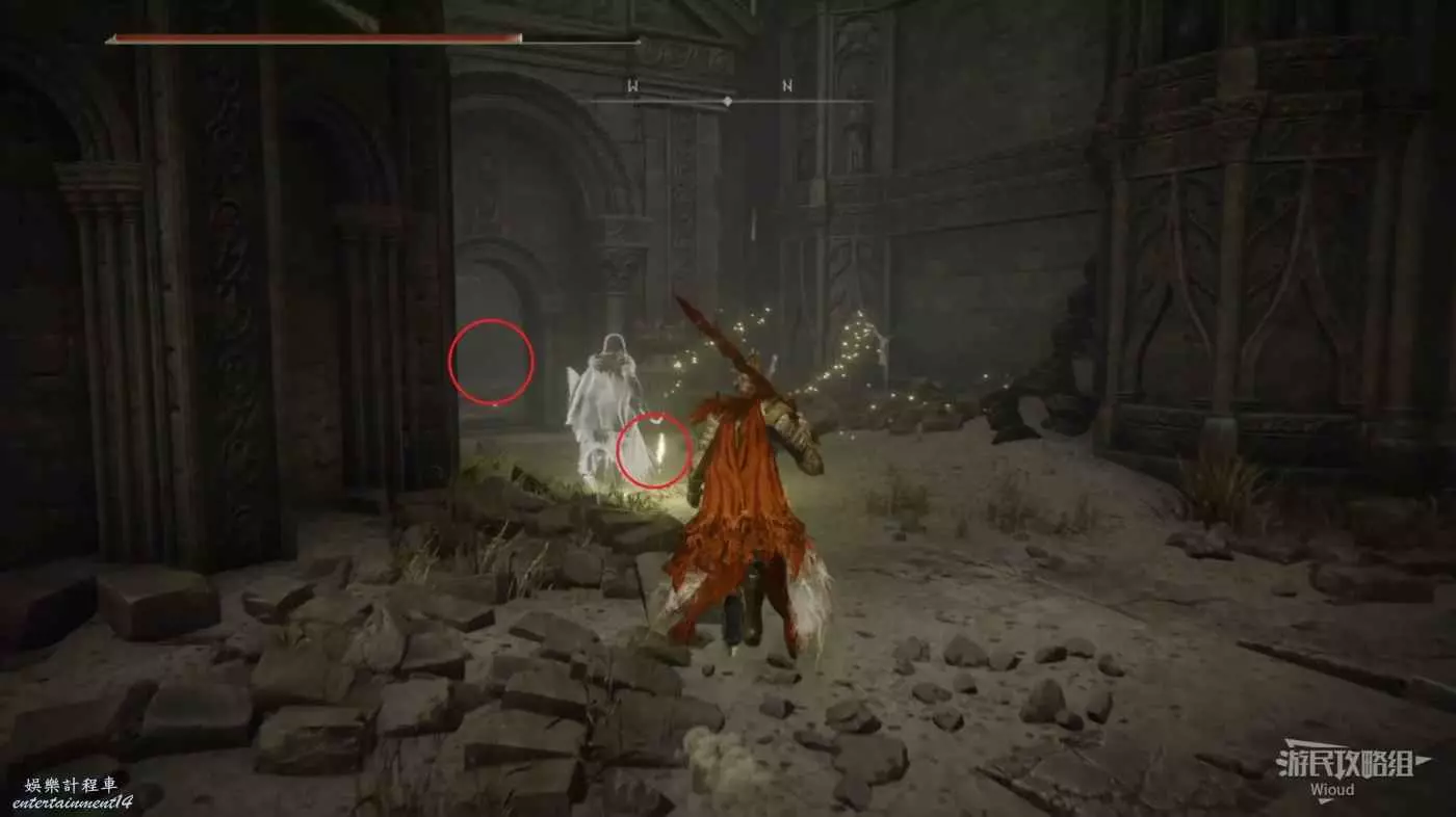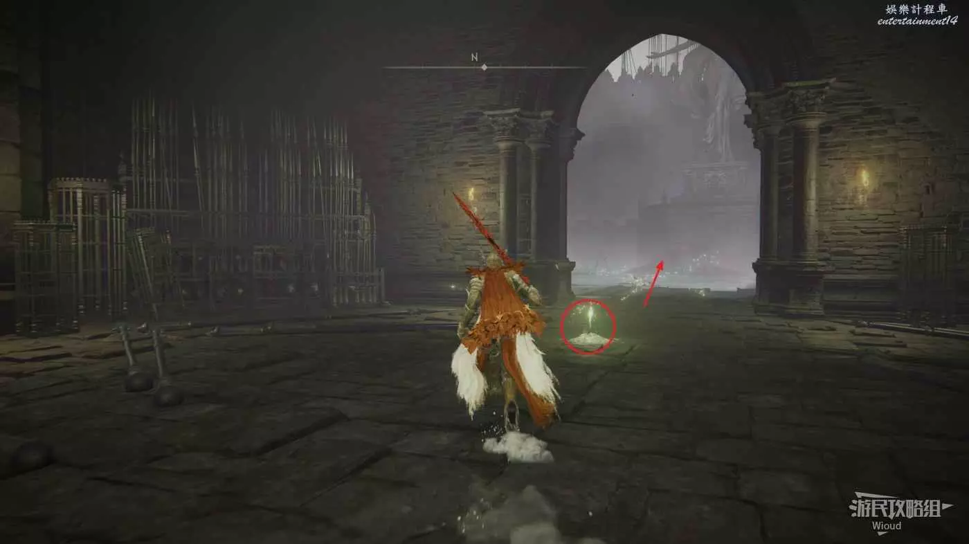 此處可以看到左右兩邊各有一個圓形建築,我們往左側的那一個走,中間雕像的位置可以撿到一個【靈灰】。