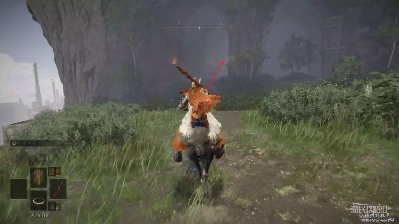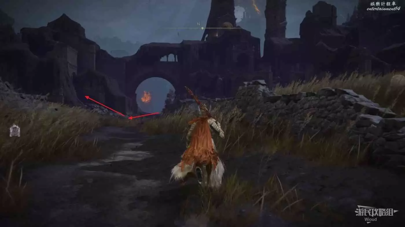 打開大門進入下一個區域,騎馬往左走,繞一圈直走就能看到第二個大門。