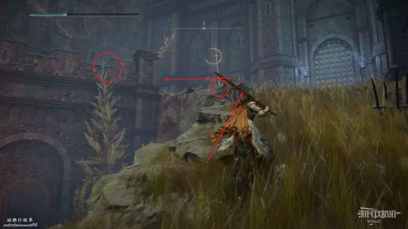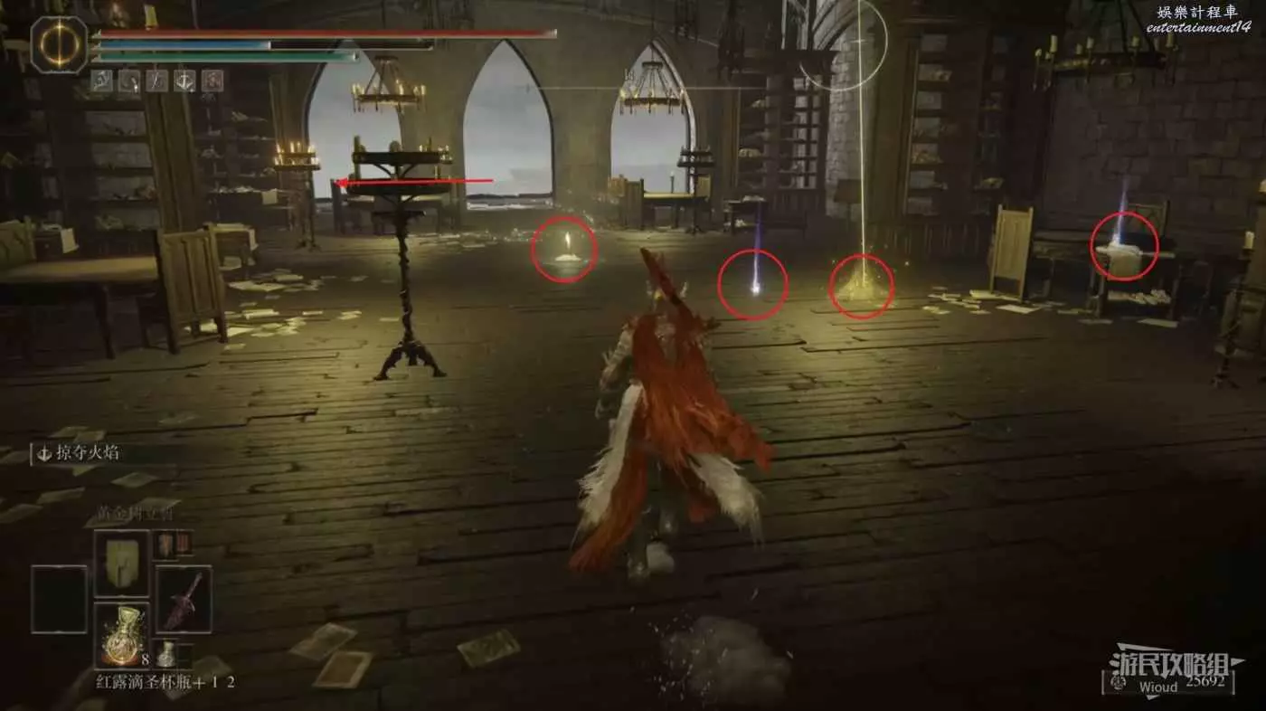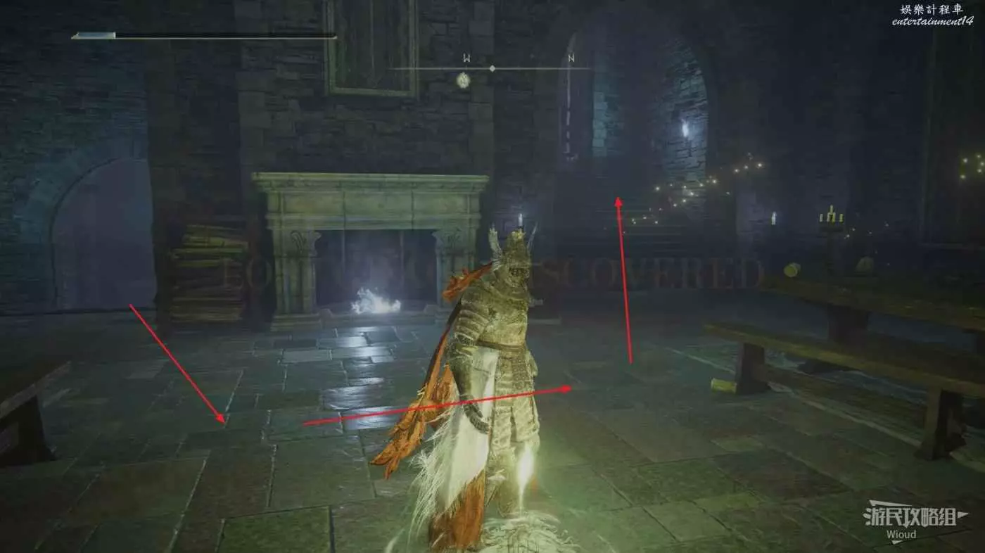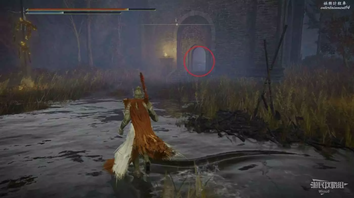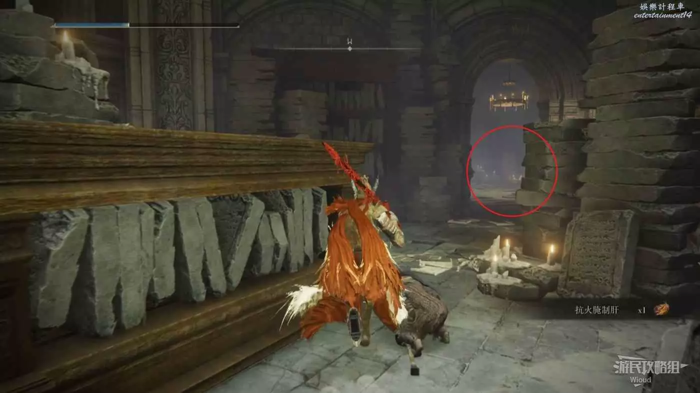 進入建築直接直走,借助下方的燭台跳到柵欄另一邊,可以啟動賜福【第一塔】。