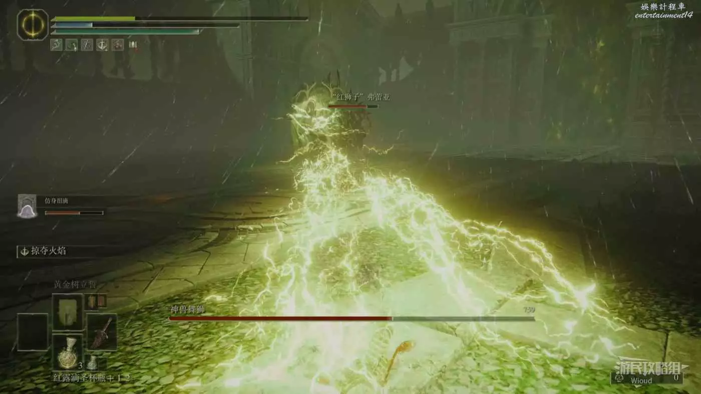當神獸舞獅是雷屬性時,它在近戰攻擊之餘還會召喚大量的落雷,每個落雷的特效出現幾秒後才會造成傷害,因此提前觀察,不要被封走位就不會受到傷害。