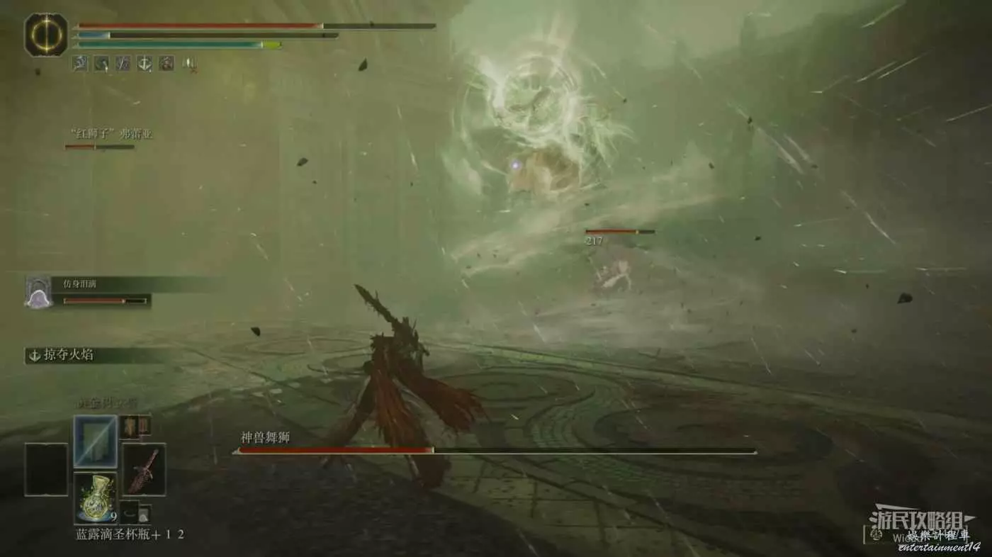 召喚協助者能降低一些BOSS的難度,因此不要忘記召喚協助者,打開大門即可開啟神獸舞獅的BOSS戰。
