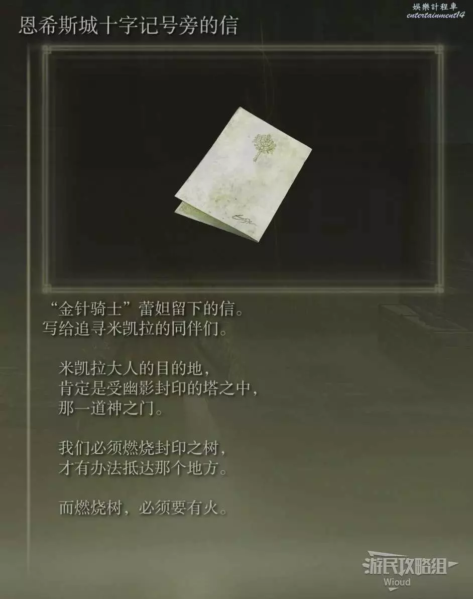 此處還能再十字記號處獲得一個【幽影樹碎片】與【恩希斯城十字記號旁的信】。