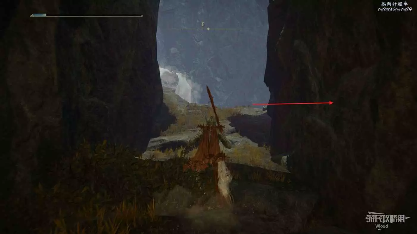 擊敗這個敵人之後連續往下跳,可以看到下面的石頭有個入口,直接跳到下面。