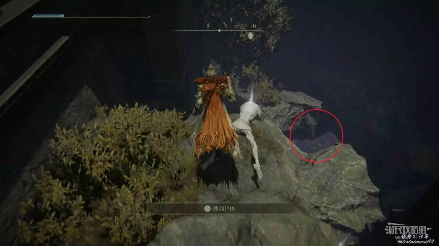 繞到火焰巨人背後的平地,往前E-S的中間方向走。