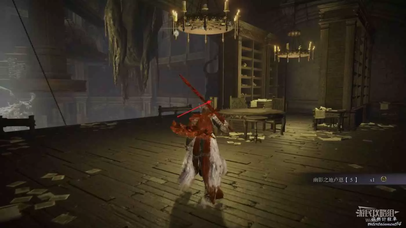 左前方有一個可以進入的房間,裡面有一個【幽影樹碎片】可以拿。