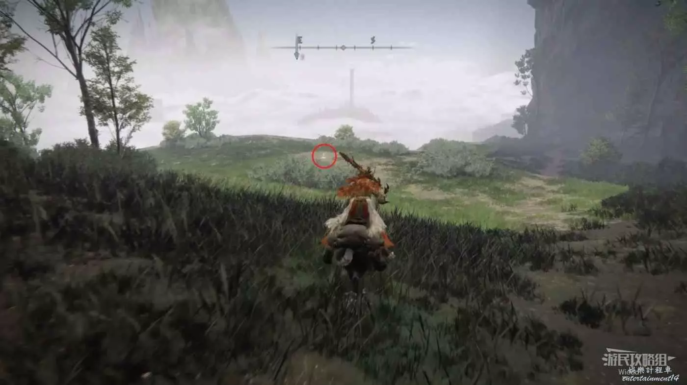 我們啟動第一個賜福點之後騎馬右前方走,稍微走一段就能看到右側的地圖石,此處可以拾取到第一張地圖。