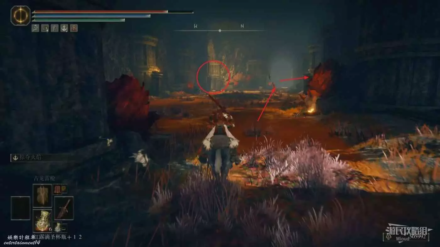 後面從第二個賜福點往回走,右側第一個大門就是火吻遺跡的入口。