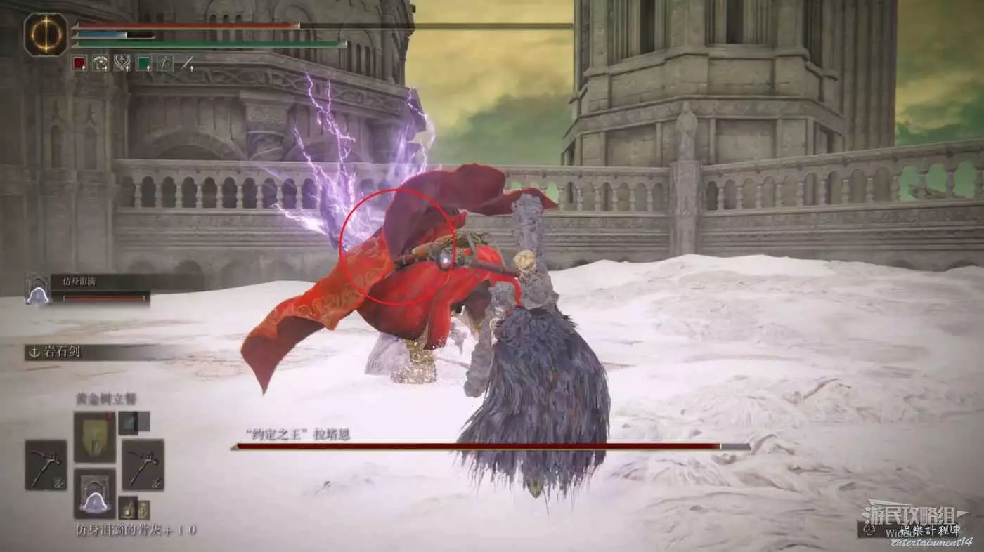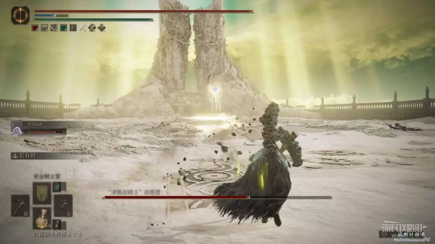 此戰強烈建議不要使用法師、信仰禱告流這些流派,拉塔恩的攻擊慾望很強,仇恨轉移的也非常快,基本你遠端打他一下,立馬就沖到你這邊來了,很坐牢。