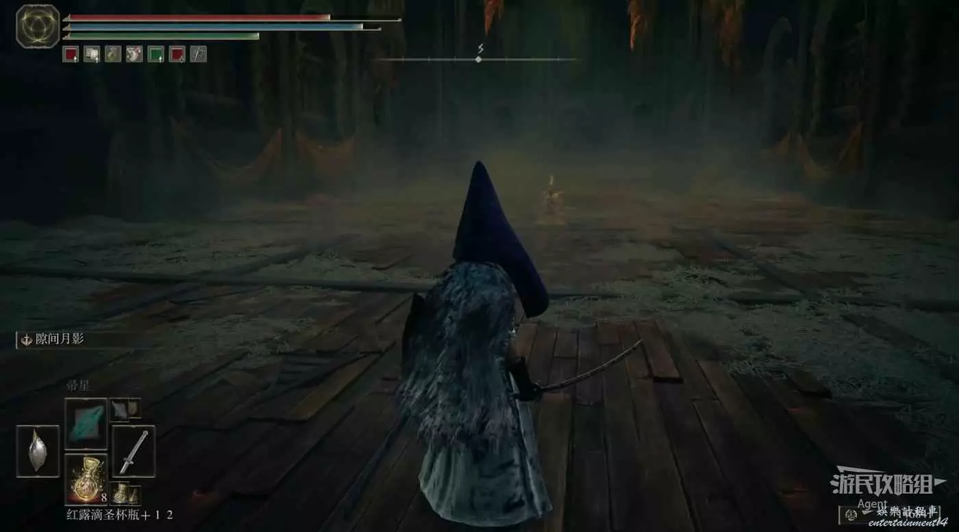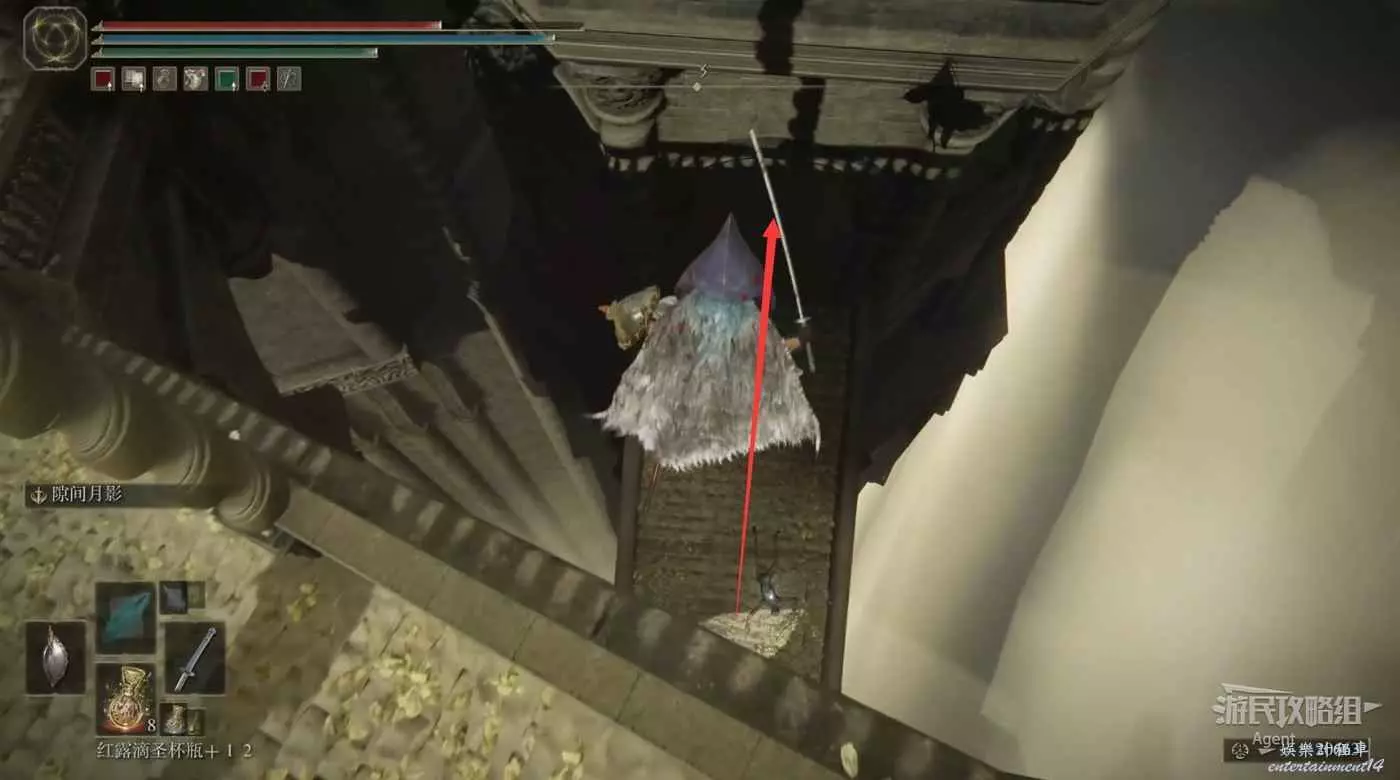 衝刺跳到對面的洞裡,然後就能抵達下面的廣場,撿到【幽影樹碎片】,小心廣場上有蜘蛛陰你。